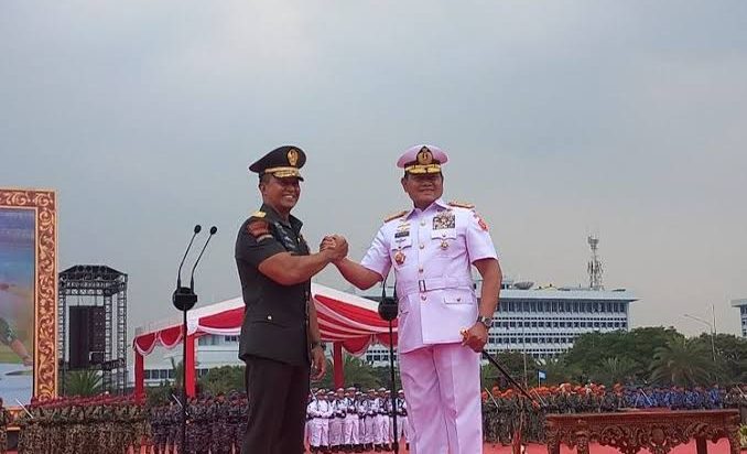 Jakarta, PUBLIKASI – Jenderal Andika Perkasa resmi menyerahkan jabatan Panglima TNI kepada Laksamana Yudo Margono dalam upacara serah terima jabatan (sertijab) di Mabes TNI, Cilangkap, Jakarta Timur, Selasa (20/12).