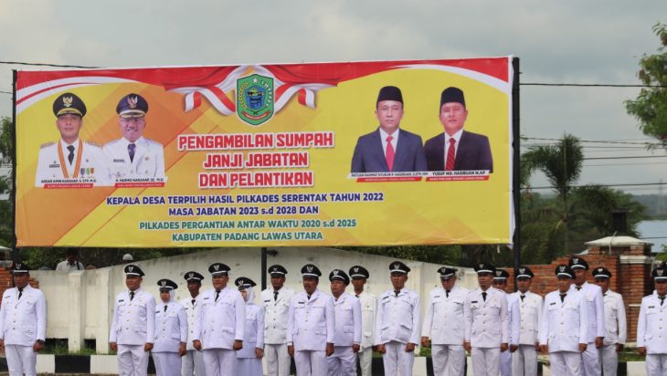 Paluta, PUBLIKASI – Bupati Padang Lawas Utara Andar Amin Harahap, S.STP., M.Si., resmi melantik 115 Kepala Desa terpilih hasil Pilkades Serentak Tahun 2022 Masa Jabatan 2023-2028 dan 1 Kepala Desa Pergantian Antar Waktu 2020 s/d 2025 se-Kabupaten Kabupaten Padang Lawas di Halaman Kantor Bupati Padang Lawas Utara, Selasa (27/12/2022).