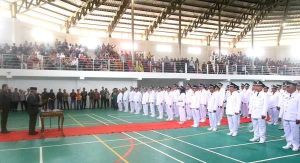 Prosesi pelantikan dan pengambilan jabatan sumpah dilaksanakan di Gedung Olah raga (Gor) “BERCAHAYA” Kabupaten Padang Lawas, Rabu 28 Desmber 2022.