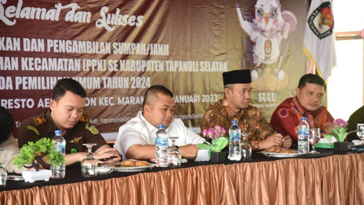“Kita berharap Pemilu 2024 harus sekaitan dengan sosialisasi, informasi, sehingga masyarakat yang mempunyai hak konstitusional merasa terayomi dan terakomodir dengan baik,” tegas Bupati saat hadiri pelantikan PPK se-Kabupaten Tapsel di Aula Syaakira View and Resto, Desa Aek Sabaon, Kecamatan Marancar, Kabupaten Tapsel, pada Rabu (4/1).