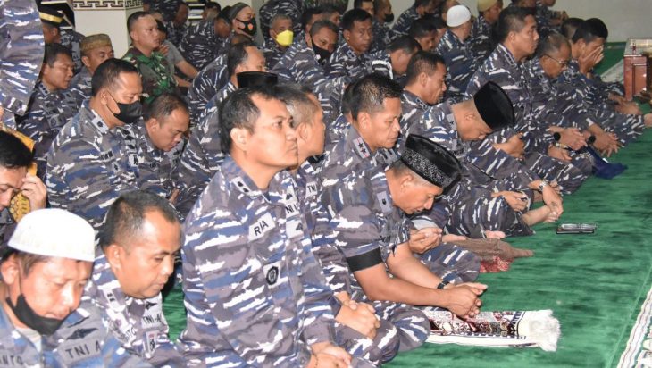 Jakarta, PUBLIKASI – Sesaat setelah ibadah sholat Jumat usai, Komando Lintas Laut Militer menggelar doa bersama yang diikuti oleh Panglima Kolinlamil Laksda TNI Agus Hariadi beserta pejabat utama Kolinlamil dan prajurit serta PNS Kolinlamil di Masjid At-Tauhid, Mako Kolinlamil, Tanjung Priok, Jakarta Utara, Jumat (13/1).