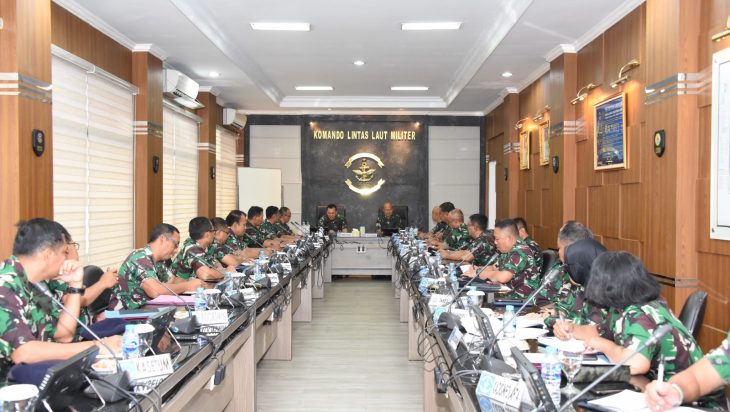 Jakarta, PUBLIKASI – Diawal penugasannya usai mengikuti Apel Komandan Satuan di Akademi Militer, Magelang, Panglima Komando Lintas Laut Militer Laksda TNI Yayan Sofiyan memberikan arahannya kepada seluruh pejabat utama dan kepala satuan kerja jajaran Kolinlamil serta Komandan KRI di ruang rapat Panglima, Mako Kolinlamil, Tanjung Priok, Jakarta Utara, Senin (30/1).