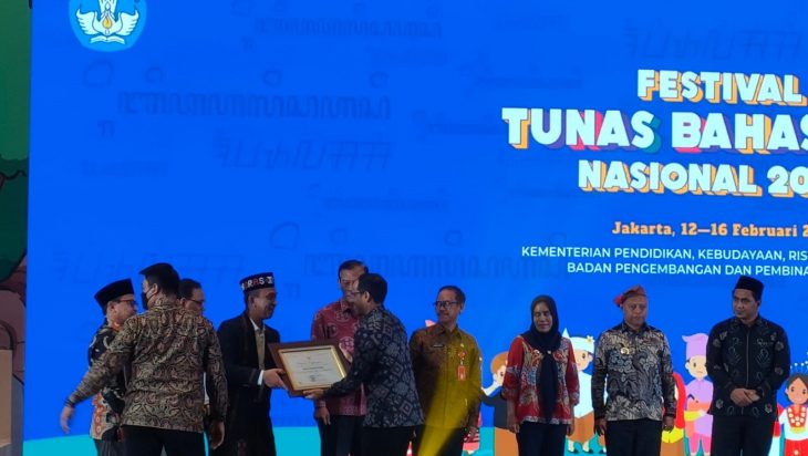 Tapsel, PUBLIKASI – Pemerintah Kabupaten (Pemkab) Tapanuli Selatan (Tapsel) menerima penghargaan atas dukungan dan upaya pemerintah daerah dalam melestarikan bahasa daerah. Penghargaan tersebut diserahkan Mendikbud Ristek Nadiem Anwar Makarim, kepada Bupati Tapsel, H Dolly Pasaribu, yang diwakili Kadis Pendidikan Arman Pasaribu di Golden Ballroom The Sultan Hotel, Jakarta, Senin (13/2) malam.