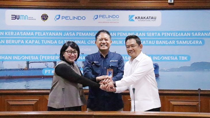 Jakarta, PUBLIKASI – PT Jasa Armada Indonesia Tbk (IDX: IPCM) hari ini menandatangani perpanjangan kerjasama dengan PT Krakatau Bandar Samudera, bersama dengan PT Pelabuhan Indonesia (Persero) Regional 2 Banten tentang pelayanan jasa pemanduan dan penundaan serta penyediaan sarana bantu pemanduan berupa kapal tunda di area Terminal Cigading.