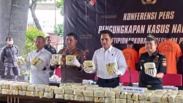 Jakarta, PUBLIKASI ‐‐ Bareskrim Polri menangkap tujuh tersangka peredaran narkoba jenis sabu jaringan Malaysia. Sebanyak 220 kilogram (kg) sabu dan 705 butir pil ekstasi turut disita sebagai barang bukti.