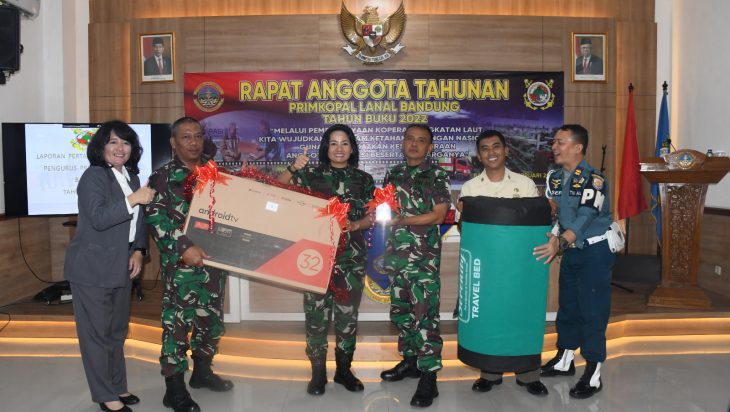 Bandung, PUBLIKASI – Primkopal (Primer Koperasi Angkatan Laut) Lanal Bandung menggelar RAT (Rapat Anggota Tahunan) Tahun Buku 2022, dengan Tema “Melalui Pemberdayaan Koperasi Angkatan Laut Kita Wujudkan Program Ketahanan Pangan Nasional Guna Meningkatkan Kesejahteraan Anggota Koperasi Beserta Keluarganya”, bertempat di Aula Mako Lanal Bandung, Jalan Aria Jipang No. 8, Kota Bandung, Senin (27/02/2023).