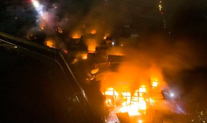 Api yang menyambar hingga ke dua kawasan rumah warga (RW) ini juga mengakibatkan ratusan orang terpaksa mengungsi.