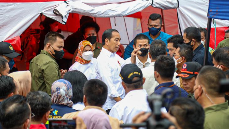 Jakarta, PUBLIKASI – Presiden Republik Indonesia (RI), Joko Widodo bersama Ibu Iriana, Menteri BUMN Erick Thohir, Menteri Koordinator Bidang Pembangunan Manusia dan Kebudayaan RI, Muhadjir Effendy, dan Penjabat (Pj) Gubernur Provinsi DKI Jakarta, Heru Budi Hartono meninjau lokasi pengungsian korban kebakaran Depo Pertamina Plumpang yang berada di RPTRA Rasela, Jakarta Utara, Minggu (5/3).