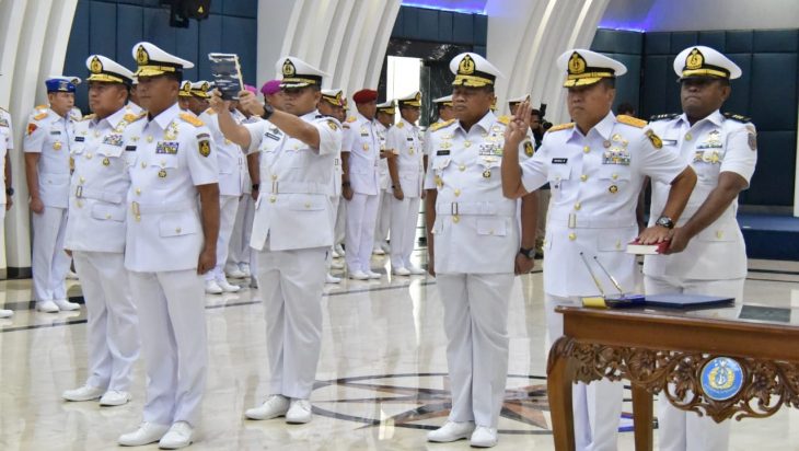 Jakarta, PUBLIKASI – Panglima Komando Lintas Laut Militer Laksda TNI Yayan Sofiyan didampingi Ketua Gabungan Jalasenastri Kolinlamil Ny. Peni Yayan Sofiyan menghadiri upacara serah terima Jabatan Asisten Operasi dan Asisten Personel Kasal yang dipimpin oleh Kepala Staf Angkatan Laut Laksamana TNI Muhammad Ali di Wisma Elang Laut, Menteng, Jakarta Pusat, Senin (6/3). Serah terima jabatan tersebut dilaksanakan berdasarkan Surat Keputusan Panglima TNI Nomor Kep/114/I/2023 tentang Pemberhentian dari dan Pengangkatan Dalam Jabatan di Lingkungan TNI yang dikeluarkan pada tanggal 31 Januari 2023 lalu.