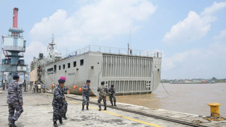 Palembang, PUBLIKASI – Pangkalan TNI AL Palembang melaksanakan salah satu fungsi Pangkalan yaitu melayani unsur yang melakukan operasi di wilayah kerjanya. Prajurit Lanal Palembang melaksanakan merflug kedatangan Kapal Perang Republik Indonesia (KRI) Banda Aceh-593 yang sedang melaksanakan dukungan angkutan laut Serpas/Sermat Satgas Pamtas RI-PNG Provinsi Papua dan Papua Barat dari Satuan Yon Raider 200/BN TA. 2023, bertempat di Sermaga B Pelabuhan Boom Baru, Palembang, Rabu (22/03/2023).