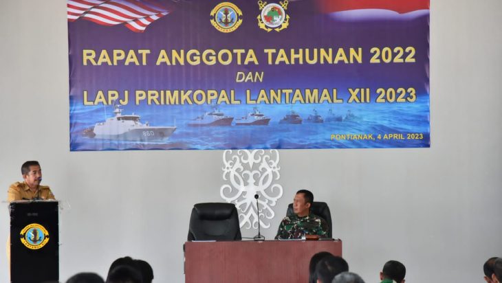Jakarta, PUBLIKASI – Wakil Komandan Pangkalan Utama TNI Angkatan Laut (Wadan Lantamal) XII Kolonel Marinir Budiarso, S.E., mewakili Danlantamal XII Laksamana Pertama TNI Dr. Suharto pimpin Rapat Anggota Tahunan Primkopal Lantamal XII, bertempat di Gedung Malahayati Mako Satrol Lantamal XII Pontianak, Selasa (04/04/2023).