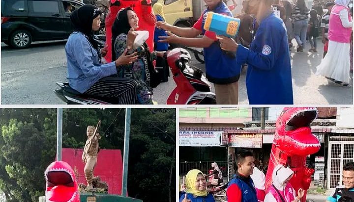 Saat menerima nasi kotak masyarakat juga di hibur dengan hadirnya Boneka Dinosaurus, terlihat beberapa anak-anak kecil kegirangan dilokasi tersebut, bahkan ada yang meminta Poto bersama dengan Dinosaurus, (DL.01)
