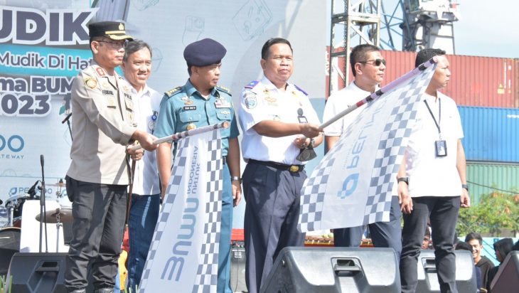 Jakarta, PUBLIKASI — Hari Raya Idul Fitri 1 Syawal 1444 Hijriah tinggal menghitung hari. Moment menjelang hari lebaran sangat identik dengan tradisi mudik ke kampung halaman khususnya masyarakat yang tinggal di kota besar seperti DKI Jakarta. Dalam rangka membantu warga masyarakat, BUMN dan PT Pelabuhan Indonesia memfasilitasi mudik gratis bagi warga Jakarta yang dilepas keberangkatannya oleh Direktur Utama Pelindo Arif Suhartono di Terminal ex JICT II, Pelabuhan Tanjung Priok, Jakarta Utara, Senin (17/4). Turut hadir dalam acara tersebut Asisten Potensi Maritim Pangkolinlamil Kolonel Laut (P) Teguh Iman Wibowo mewakili Panglima Kolinlamil Laksda TNI Yayan Sofiyan.