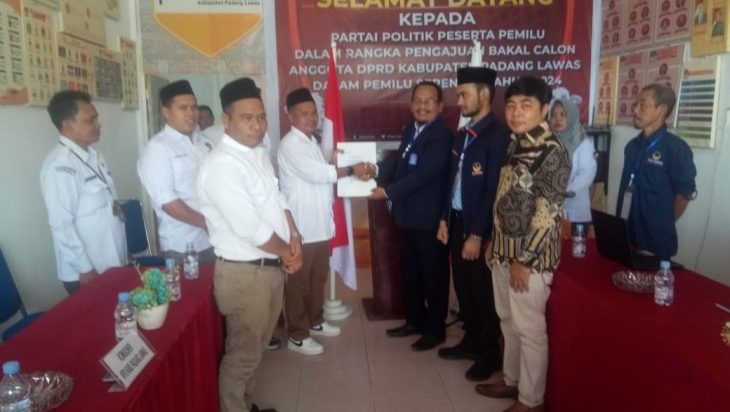 Amatan publikasi, Ketua DPD Partai Nasional Demokrat Kabupaten Padang Lawas Imran Saleh Siregar ST di dampingi Sekretaris Raja Aslin Sinaloan Lubis menyerahkan Daftar Bacaleg dari partai Nasdem yang ikut bertarung di pemilihan umum 2024 nanti.
