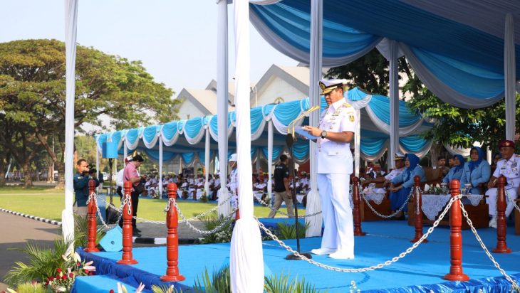 Jakarta, PUBLIKASI — Panglima Komando Lintas Laut Militer Laksda TNI Yayan Sofiyan beserta Ketua Gabungan Jalasenastri Kolinlamil Ny. Peni Yayan Sofiyan menghadiri upacara peringatan ke-77 Hari Pendidikan TNI Angkatan Laut yang digelar di Lapangan Laut Maluku Komando Pendidikan dan Latihan Angkatan Laut, Moro Krembangan, Surabaya, Rabu (17/5).