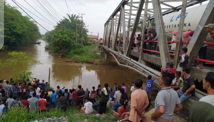 Saat korban ingin naik ke atas jembatan Titi Sungai pelawi, celana korban tersangkut di salah satu baut jembatan sehingga tubuh korban terlebih dahulu membentur pipa air dan pipa Telkom yang berada disisi jembatan, lalu tubuh korban terjatuh ke sungai dan tidak terlihat lagi dipermukaan Sungai.