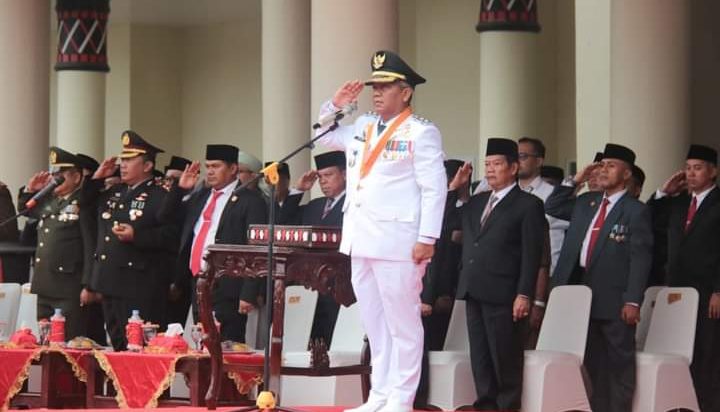 Bertindak sebagai Komandan Upacara Letda Inf. Khairullah Danramil 10 Binanga, Pembaca Teks Proklamasi Ketua DPRD Kabupaten Padang Lawas Amran Pikal Siregar, S.Sos.