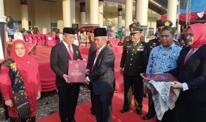 Penyerahan tanda kehormatan Satya Lancana Karya Satya diserahkan langsung oleh Plt Bupati Palas, drg H Ahmad Zarnawi Pasaribu C.Ht MM MSi MH didampingi Sekda Arpan Nasution SSos serta unsur Forkopimda, dihalaman Kantor Bupati Komplek Perkantoran SKPD Terpadu Sigalagala Sibuhuan, usai kegiatan upacara penurunan bendera merah putih