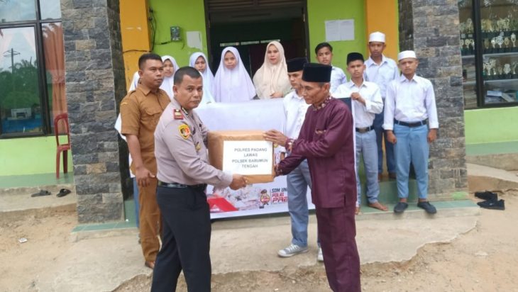 Padang Lawas, PUBLIKASI – Kapolsek Barumun Tengah AKP Syawaluddin H, SH di dampingi kepala desa Aek Buaton kec. Aek Nabara barumun, membagikan buku bacaan kepada Santri Pondok Pesantren Dinul Khoriah di desa Aek Buaton, Kecamatan Aek Nabara Barumun, Senin 04 September 2023.
