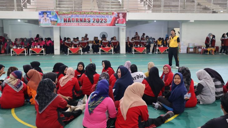 Padang Lawas, PUBLIKASI – Polisi Resor Kabupaten Padang Lawas mensosialisasikan bahaya Narkoba Kepada peserta Senam Sehat dalam rangka memeriahkan HORNAS KE 40, di Gedung Olah Raga (GOR) BERCAHAYA, Kabupaten Padang Lawas, Selasa 12 September 2023.