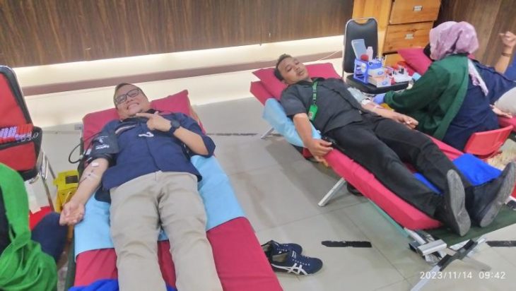Donor darah yang diadakan di ruang serba guna lantai-5 Gedung KSO TPK Koja, Jl Digul No.1 Tanjung Priok Jakarta Utara dan hanya diperuntukkan bagi karyawan yang bekerja di lingkungan KSO TPK Koja, Selasa (14/11/2023).