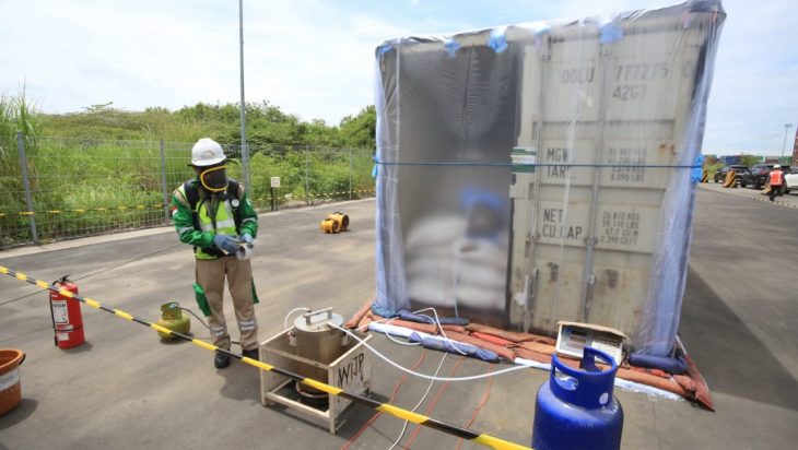 Surabaya, PUBLIKASI – Balai Karantina Hewan, Ikan, dan Tumbuhan (BKHIT) Jawa Timur lakukan peluncuran Area Layanan Fumigasi dan Pemeriksaan Kulit Mentah Garaman di Terminal Teluk Lamong yang merupakan bagian dari wilayah Pelabuhan Tanjung Perak. Peluncuran ini merupakan upaya untuk mendapatkan penilaian rapor hijau dari evaluasi Tim Stranas PK – KPK.