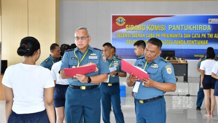 Pontianak, PUBLIKASI — Komandan Pangkalan Utama TNI Angkatan Laut (Danlantamal) XII Laksamana Pertama TNI Agoeng MKS memimpin jalannya Sidang Komisi Pantukhirda Caba PK Pria/Wanita dan Cata PK TNI AL Gel. I TA 2024 Panda Lantamal XII Pontianak di Gedung Malahayati Satrol Lantamal XII, Jalan Komodor Yos Sudarso No. 1 Pontianak Kalimantan Barat, Selasa (13/02/2024).