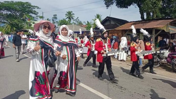 Selain SD 0507 Latong terlihat juga penampilan Ponpes MTs S Ja’Fariyah desa Huta ibus, Kecamatan Lubuk Barumun, di tengah peserta pawai yang tampil memukau, menambah semaraknya acara.