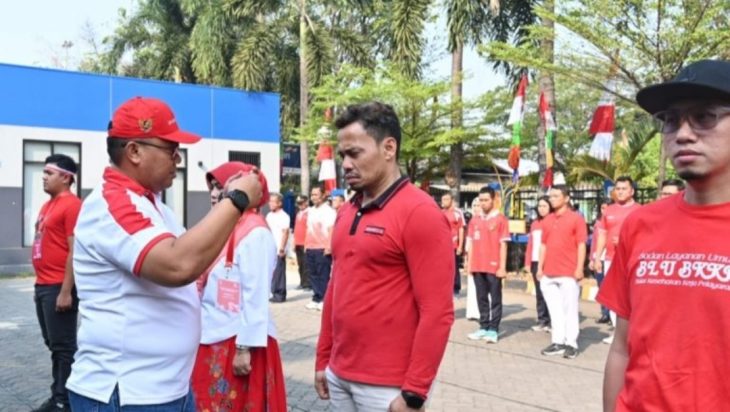 Jakarta, PUBLIKASI — Kepala KSOP Utama Tanjung Priok M.Takwim Masuku sedang memberi arahan kepada para pegawai peserta lomba.
