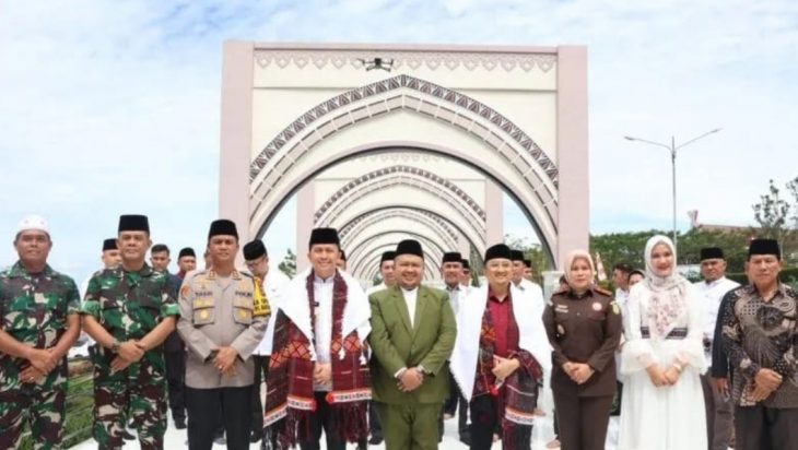 Bupati Tapsel Dolly Pasaribu ‘mangulosi’ Pj Gubernur Sumut Fatoni dan Ustadz Mansur, sedang Ketua MUI Tapsel KH Ahmad Ghozali selempangkan sorban. Ini sebagai bentuk penghormatan kepada tamu yang di agungkan yang datang ke daerah yang kental dengan adat budaya ini.
