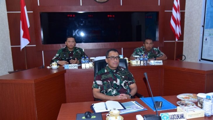 Jakarta, PUBLIKASI — Kepala Staf Kolinlamil Laksma TNI Mochammad Riza, S.E., M.Tr. Opsla., CRMP, dalam hal ini mewakili Panglima Kolinlamil Laksda TNI Hudiarto Krisno Utomo, PSC(j) M.A., M.M.S., CHRMP beserta Asisten Operasi Kolinlamil (Asops Pangkolinlamil) Kolonel Laut (P) Awang Bawono, S.E., M.M., M.Si serta Komandan Detasemen Mako Kolinlamil (Dandenmako Kolinlamil) Kolonel Laut (P) Joko Setiyono, S.E., M.Tr., Hanla, menghadiri rapat koordinasi HUT Ke-79 TNI Tahun 2024 (secara Vicon), bertempat di Ruang Puskodal Kolinlamil, Tanjung Priok, Jakarta Utara, Jumat (13/9).