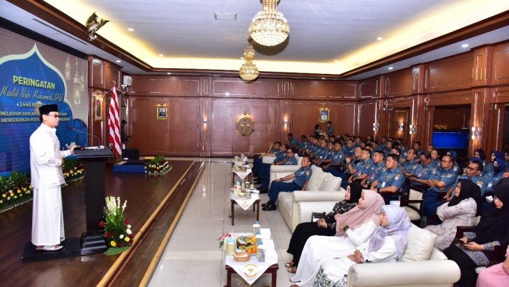 Sementara itu, Dr.KH. M. Haris Hakam, M.A., dalam tausiyahnya menyampaikan bahwa Nabi Muhammad telah memberikan banyak teladan dalam kepribadiannya, yaitu kesabaran dalam menghadapi segala cobaan, ketegaran dalam berbagai tantangan, kejujuran dalam bersikap dan kedermawanan serta selalu berusaha memelihara hubungan yang harmonis dengan siapapun. “Selayaknya kita selaku umat Muslim dapat mencontoh apa yang telah diajarkan oleh Nabi Muhammad SAW di dalam kehidupan sehari-hari, termasuk dalam lingkup kedinasan”ungkap Dr.KH. M. Haris Hakam, M.A dalam tausiyahnya. (Andi RR)