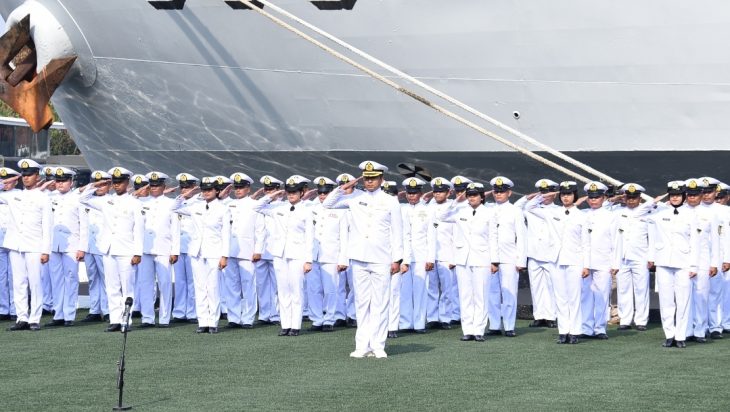 Jakarta, PUBLIKASI – Kepala Staf Kolinlamil Laksma TNI Mochammad Riza, S.E., M.Tr. Opsla., CRMP., dalam hal ini mewakili Panglima Kolinlamil Laksda TNI Hudiarto Krisno Utomo, PSC(J) M.A., M.M.S., CHRMP memimpin Upacara Peringatan Hari Kesaktian Pancasila diikuti seluruh prajurit dan PNS Mako Kolinlamil yang dilaksanakan di Lapangan Moeljono Silam, Mako Kolinlamil, Tanjung Priok, Jakarta Utara, Selasa (1/10). Upacara peringatan Hari Kesaktian Pancasila (Hapsak) yang dilaksanakan setiap tanggal 1 Oktober dilaksanakan untuk mengenang sejarah tragedi atas gugurnya putra-putra terbaik bangsa akibat dari tragedi G30S/PKI pada tahun 1965 merupakan bentuk penyelewengan PKI terhadap pemerintahan RI dalam mempertahankan ideologi Pancasila sebagai falsafah Bangsa Indonesia. Adapun tema upacara peringatan Hari Kesaktian Pancasila 2024 adalah “Bersama Pancasila Kita Wujudkan Indonesia Emas”.