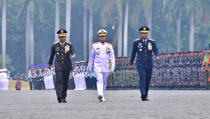 Tampak terlihat dalam gladi bersih tersebut, Panglima Kolinlamil Laksda TNI Hudiarto Krisno Utomo, PSC(J) M.A., M.M.S., CHRMP bertindak sebagai Pengucap Sapta Marga mewakili TNI Angkatan Laut (AL), bersama Mayjend TNI Putranto Gatot Sri Handoyo, S.H., S.Sos., M.M mewakili TNI Angkatan Darat (AD), dan Marsma TNI Dr. Budhi Achmadi, M.Sc., mewakili TNI Angkatan Udara (AU). (Andi RR)