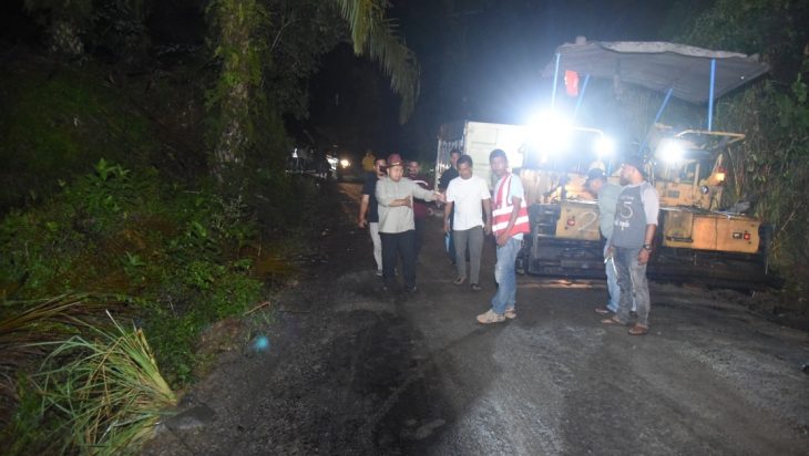Tapanuli Selatan, PUBLIKASI  — Bupati Tapanuli Selatan (Tapsel), Dolly Pasaribu, meninjau langsung progres pengaspalan jalan di jalur Pardomuan-Mosa, Kecamatan Angkola Selatan (Batas Batang Angkola) Kabupaten itu, pada Minggu (24/11) malam.