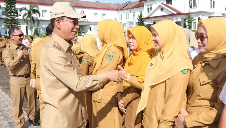 Tapanuli Selatan, PUBLIKASI — Bupati Tapanuli Selatan (Tapsel) Gus Irawan Pasaribu dan Wakil Bupati Jafar Syahbuddin Ritonga melaksanakan apel pagi gabungan perdana setelah resmi dilantik pada 20 Februari 2025 yang lalu oleh Presiden RI H. Prabowo Subianto di Istana Negara.
