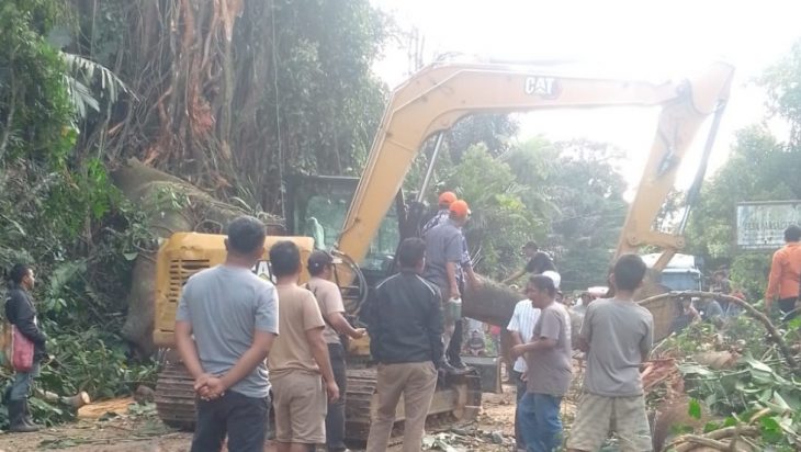 “Kami dengar bunyi, dentuman keras, tenyata pohon tumbang menuntup badan jalan,” kata warga tersebut.