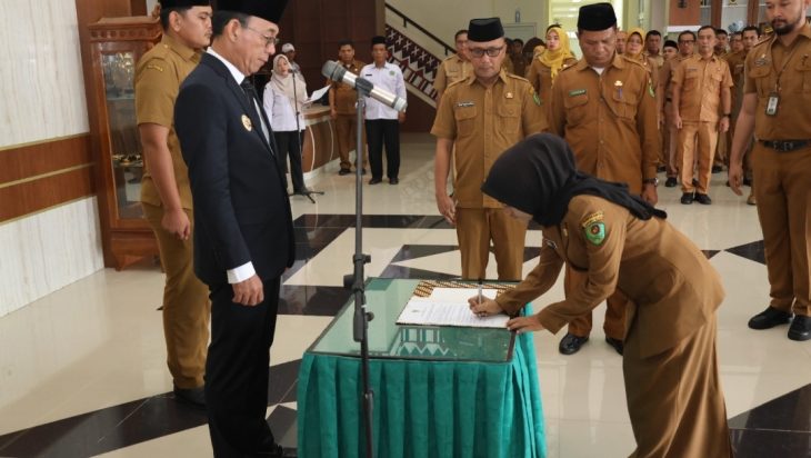 Acara pelantikan turut dihadiri oleh Sekretaris Daerah, para Asisten, Staf Ahli Bupati, Pimpinan OPD, dan jajaran Kepala Bagian di lingkungan Pemkab Tapsel. (Sakina Ramadhani)