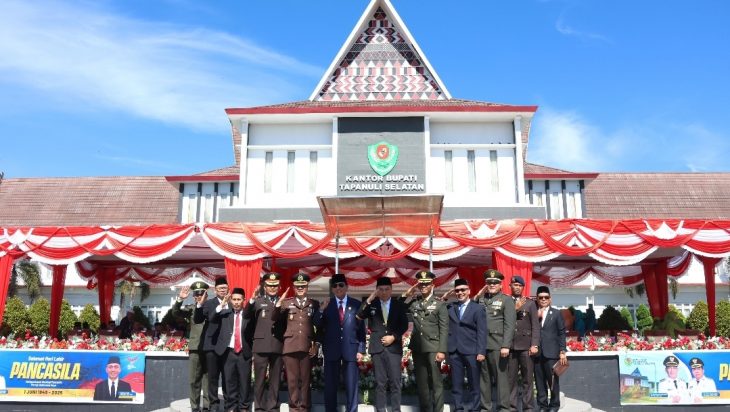Tapanuli Selatan, PUBLIKASI — Pemerintah Kabupaten Tapanuli Selatan (Pemkab Tapsel) menggelar upacara peringatan Hari Lahir Pancasila secara khidmat di Lapangan Parade Kantor Bupati Tapsel, Sipirok, Senin (2/6/2025). Upacara ini menjadi salah satu bentuk komitmen daerah dalam mengokohkan nilai-nilai ideologi Pancasila di tengah dinamika pembangunan nasional.