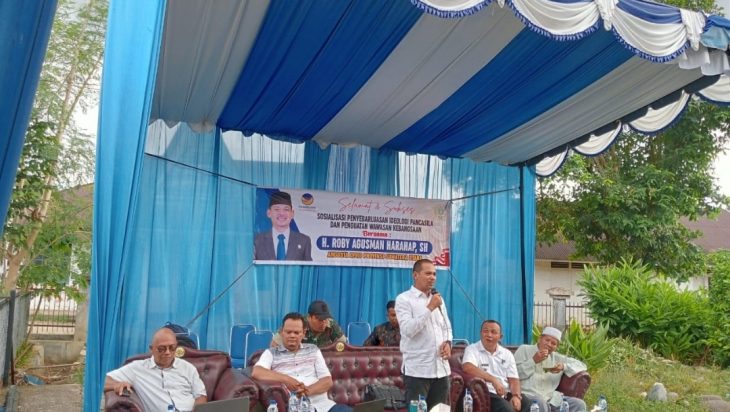 Tapanuli Selatan, PUBLIKASI — Anggota DPRD Provinsi Sumatera Utara dari Ketua fraksi partai Nasdem, H. Robi Agusman Harahap, SH mengadakan sebuah acara penting, acara ini bertujuan untuk menyebarluaskan ideologi Pancasila dan memperkuat wawasan kebangsaan di kalangan masyarakat. Kegiatan ini merupakan salah satu upaya strategis dari wakil rakyat untuk memperkuat rasa nasionalisme dan kesadaran berbangsa serta bernegara, bertempat di depan kantor lurah Wek II Batang Toru, Kelurahan Wek II Batang Toru, KecamatanBatang Toru, Kabupaten Tapanuli Selatan, (Tapsel) pada hari, Rabu, 4 – Juni 2025.