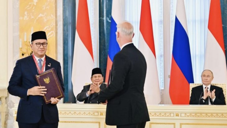 Jakarta, PUBLIKASI – Presiden Republik Indonesia Prabowo Subianto dan Presiden Federasi Rusia Vladimir Putin menyaksikan langsung prosesi pertukaran sejumlah dokumen kerja sama bilateral antara pemerintah Indonesia dan Rusia di Istana Konstantinovsky, St. Petersburg, pada Kamis, 19 Juni 2025. Pertukaran dokumen tersebut menjadi penegasan konkret atas komitmen kedua negara dalam memperkuat hubungan strategis lintas sektor di tengah dinamika global yang terus berubah.