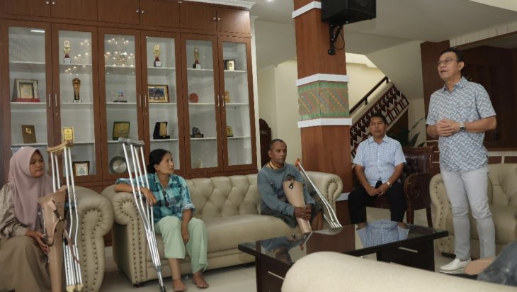 Tapanuli Selatan, PUBLIKASI — Bupati Tapanuli Selatan (Tapsel), H. Gus Irwan Pasaribu, menyambut hangat kedatangan 16 warga penyandang disabilitas dari Medan usai mereka menjalani pemasangan kaki palsu dan tangan palsu. Penyambutan berlangsung di Kantor Bupati Tapsel, Jalan Prof. Lafran Pane, Sipirok, Minggu (20/7/2025).