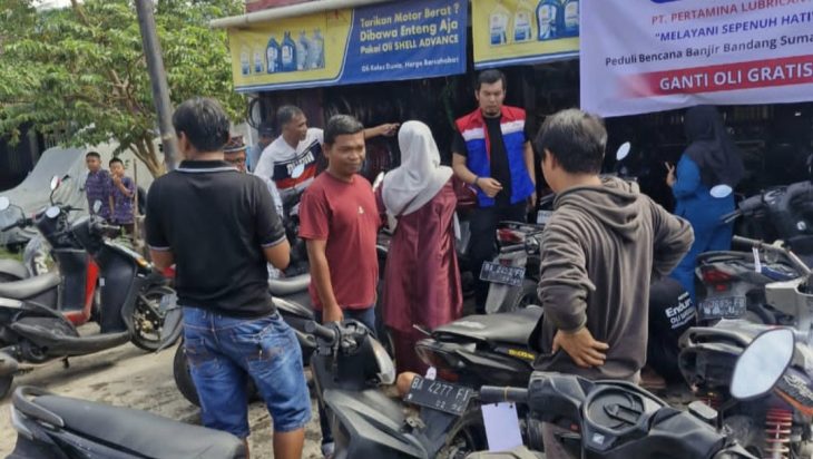 Melalui PT Pertamina Lubricants, anak usaha Subholding Commercial & Trading, Pertamina menyediakan program layanan ganti oli gratis di beberapa titik Sumut dan Sumbar. Program tersebut dijalankan bekerja sama dengan mitra bengkel sebagai bagian dari dukungan nyata untuk pemulihan akses kendaraan roda dua yang menjadi sarana transportasi utama masyarakat di kedua wilayah tersebut. Masyarakat yang motornya terdampak banjir dapat memanfaatkan layanan ganti oli gratis di sejumlah mitra bengkel binaan Pertamina Lubricants, hingga 5 Desember 2025.