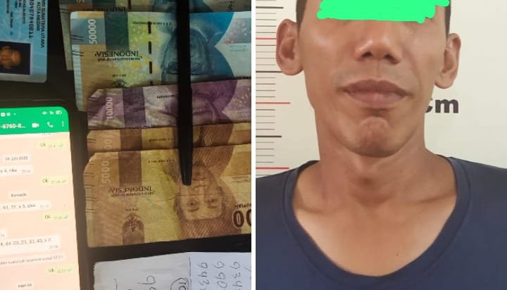 Tidak menunggu lama kemudian petugas mengamankan tersangka dan barang bukti berupa uang hasil judi Togel Sidney sebesar Rp220.000, 1 potongan kertas HVS bertuliskan angka-angka pasangan Togel Sidney, 1 buah HP Android merk OPPO warna hitam yang berisikan WA pasangan nomor Togel Sidney serta 1 buah pulpen tinta hitam sebagai alas tulis.