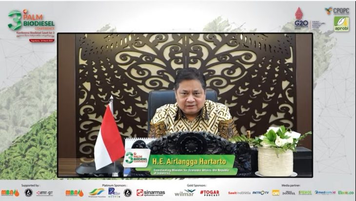 Menko Airlangga menegaskan kembali bahwa Indonesia berkomitmen mengakselerasi transisi energi bersih melalui kebijakan biodiesel untuk meraih net zero emission. Komitmen menggunakan minyak sawit sebagai bahan dasar biofuel akan mendukung Indonesia mencapai target keamanan energi dan bauran energi sebesar 23% di 2025.