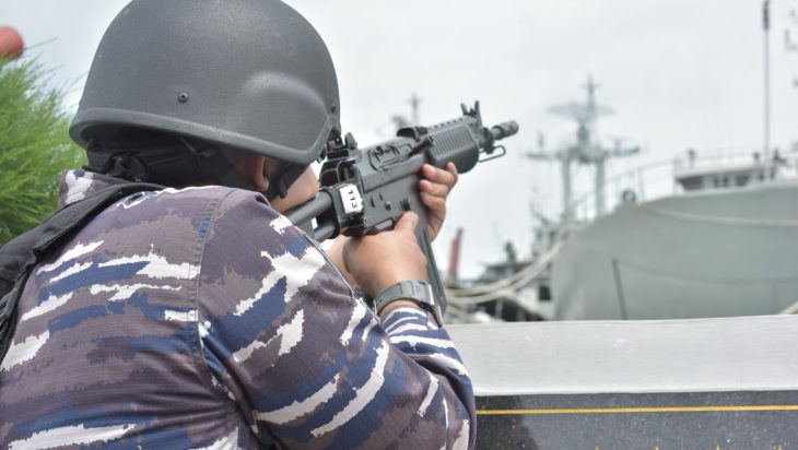 Jakarta, PUBLIKASI — Dalam rangka mengantisipasi ancaman serangan udara, prajurit Komando Lintas Laut Militer menggelar latihan Pertahanan Pangkalan yang dilaksanakan di Mako Kolinlamil, Tanjung Priok, Jakarta Utara, Rabu (15/2).