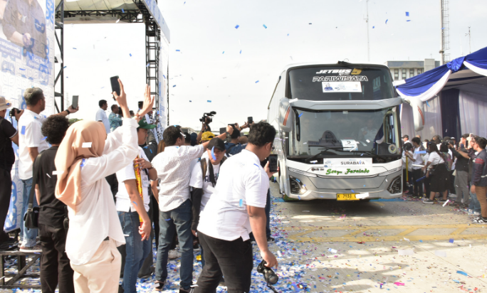 Dalam sambutannya, Direktur Utama Pelindo, Arif Suhartono mengatakan “Mudik Gratis bersama Pelindo Grup telah menjadi program tahunan kami. Dengan program ini, kami membantu memfasilitasi warga masyarakat yang tinggal di sekitar wilayah operasi perusahaan agar bisa berhari raya di kampung halamannya,” kata Direktur Utama Pelindo saat pelepasan keberangkatan Mudik Gratis bersama Pelindo Grup. (Andi RR)