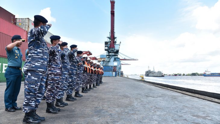 Pontianak, PUBLIKASI – Asrena Danlantamal XII Kolonel Laut (P) Lukas Idaman Karunia Meliala memimpin merplug kedatangan Kapal Perang KRI Teluk Amboina-503 di Dermaga Pelabuhan Dwikora Pontianak Kalimantan Barat. Jl. Pak Kasih Pontianak Kalimantan Barat. Selasa (23/01/2024).