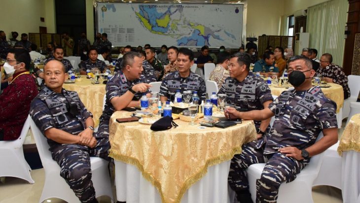 Jakarta, PUBLIKASI – Mewakili Panglima Komando Lintas Laut Militer Laksda TNI Erwin S Aldedharma, Kepala Staf Komando Lintas Laut Militer Laksma TNI Singgih Sugiarto mengikuti acara coffee morning bersama stakeholder dan soft launching buku Ekspedisi Jala Citra I “Aurora” bertajuk “Menguak Kekayaan Bawah Laut Indonesia” yang berlangsung di Ruang Serbaguna Mas Pardi Pushidrosal, Ancol, Jakarta Utara, Selasa (21/6). Buku yang dilaunching tersebut merupakan hasil ekspedisi tim survei Pushidrosal pada bulan Agustus-Oktober 2021 di Perairan Halmahera dengan menggunakan KRI Spica-934 dengan melibatkan tim peneliti dari Kementerian dan Lembaga Pemerintah non-kementerian serta perguruan tinggi.