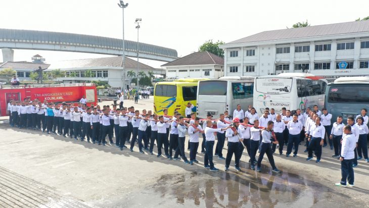 Jakarta, PUBLIKASI – Dalam rangka menguji kesiapsiagaan prajurit Komando Lintas Laut Militer menggelar latihan penanggulangan bahaya kebakaran menggunakan Mobil Pemadam Kebakaran, (PMK), dalam latihan penanggulangan bahaya kebakaran yang bertujuan untuk melatih kesiapsiagaan prajurit dalam mengantisipasi bahaya kebakaran yang sewaktu-waktu dapat terjadi. Tujuan Latihan simulasi ini untuk memberikan bekal pengetahuan dan ketrampilan kepada seluruh personel jajaran Kolinlamil dalam menanggulangi keadaan darurat bencana bahaya kebakaran digedung-gedung maupun diperkantoran yang diakibatkan tabung gas meledak ataupun akibat kosleting listrik dari percikan api yang mengakibatkan kebakaran akan merambat kemana-mana, peran latihan kebakaran diperankan oleh prajurit setelah melaksanakan olah raga pagi, yang berlangsung di Beacing Mako Kolinlamil Tanjung Priok Jakarta Utara, Selasa (16/1).
